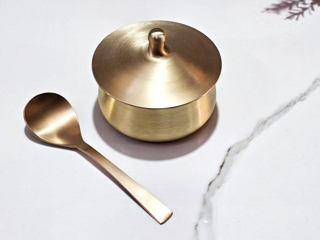 Non-Reactive Nature: Unlike copper or brass, Kansa does not react with acidic, sour, or salty foods like lemon, tamarind, or yogurt. This makes it the safest and best metal for serving and eating a wide variety of dishes .