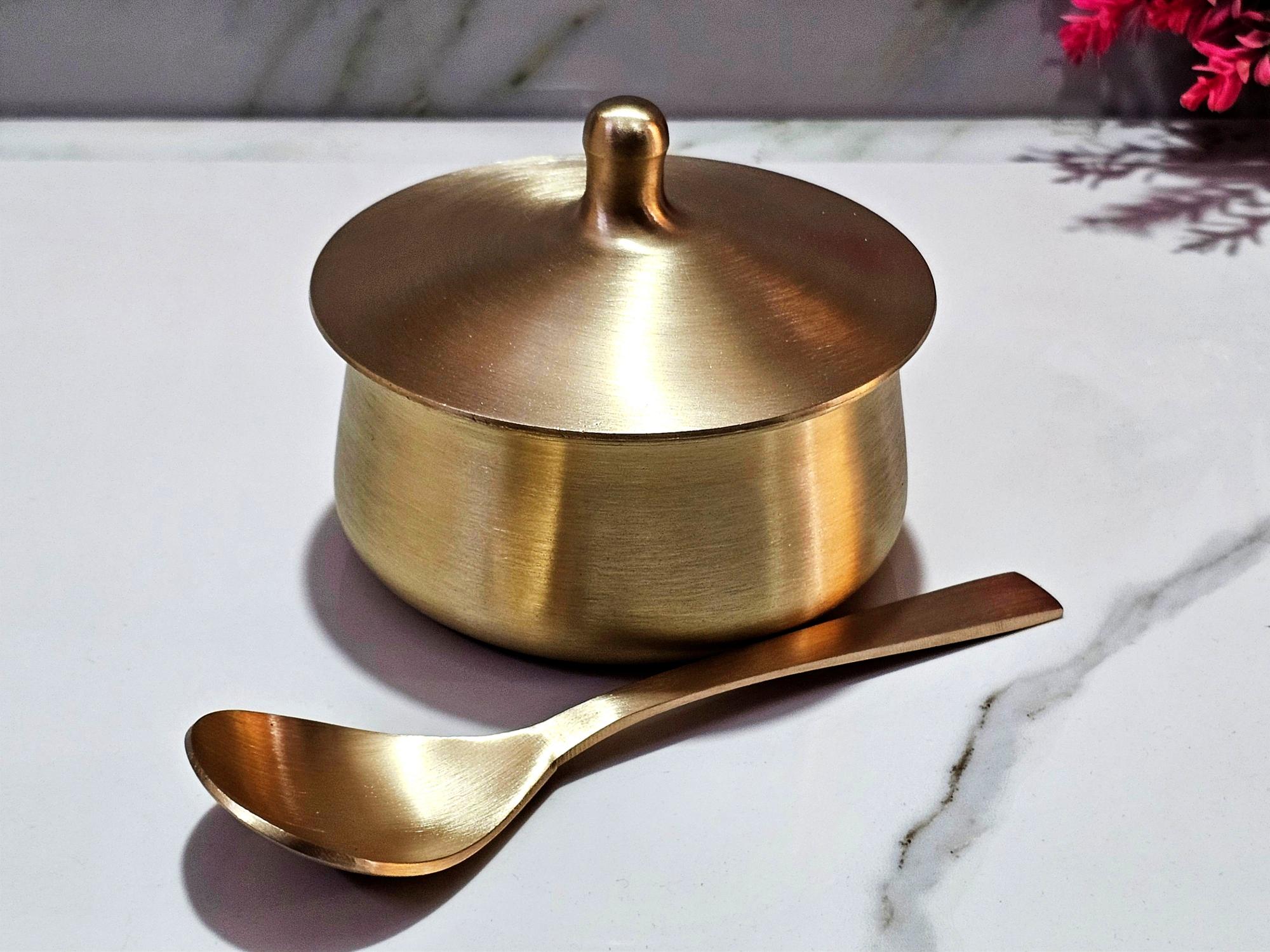 100% pure Kansa (bronze) Bowl, crafted from a traditional blend of copper (approx. 78-80%) and tin (20-22%), Pure Kansa/ Bronze ServingĀ  Bowl with Serving Spoon – Kansa Tableware Donga, CasseroleĀ  | for Serving Food, Ideal Gift for All Occasion.